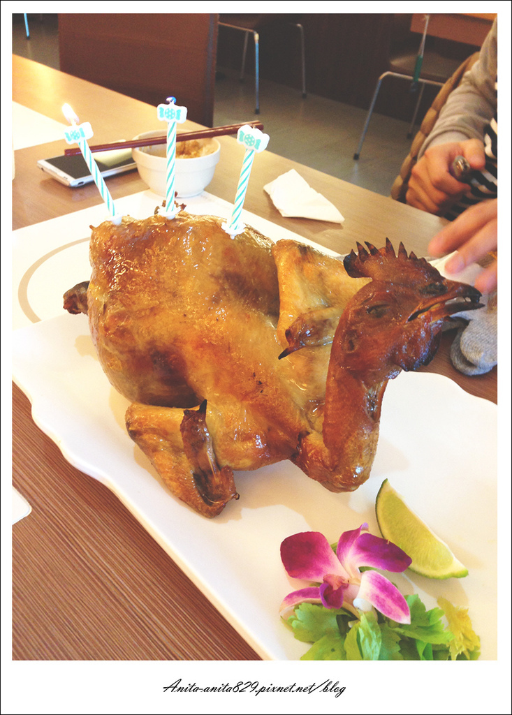 最好笑莫過於烤雞送上來後被我們插上蠟燭